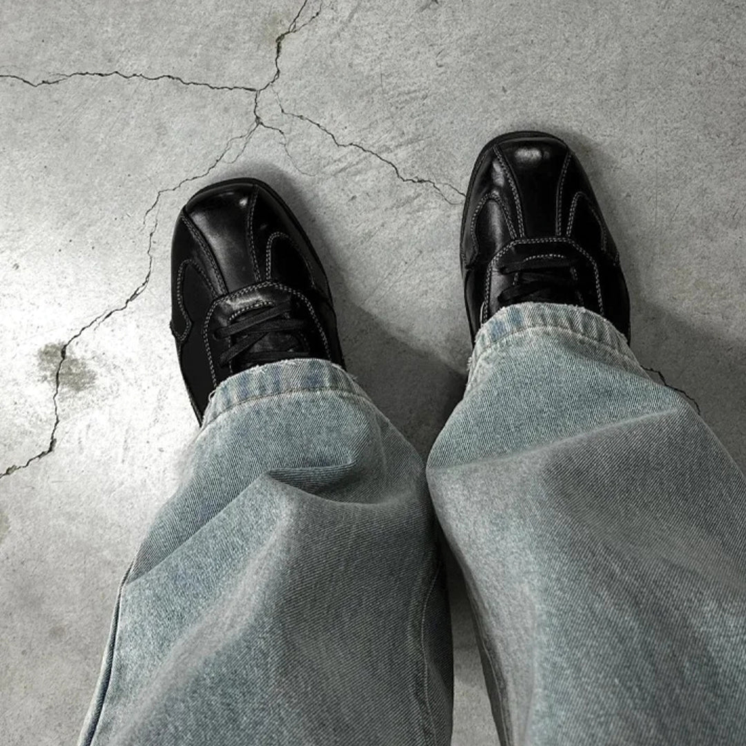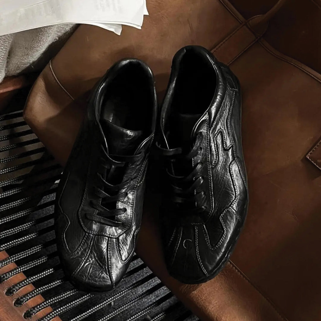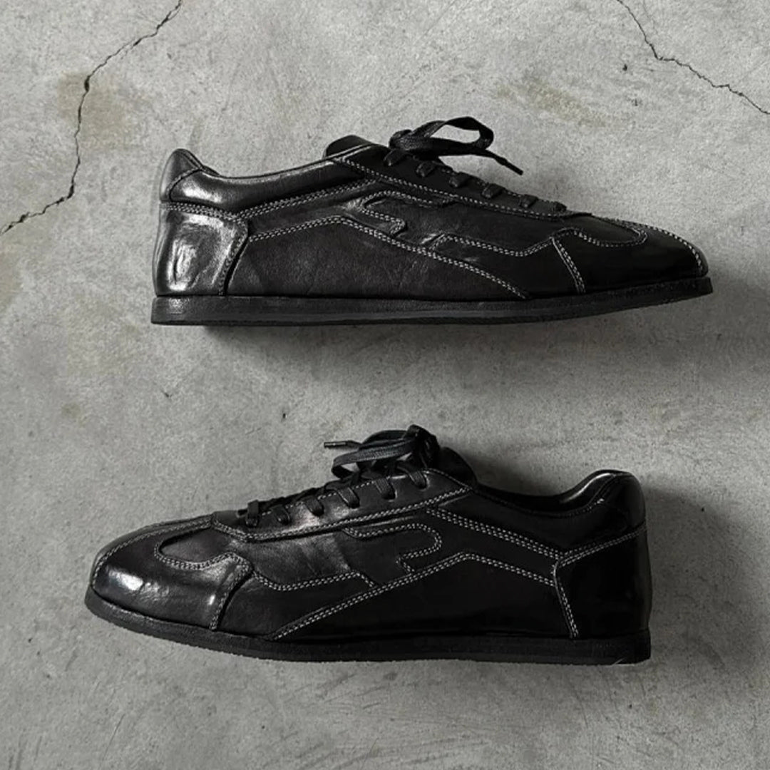 A streamlined sneaker in supple leather, cut with a squared toe and defined by contrast stitching. Its retro athletic roots are sharpened for modern streetwear styling.