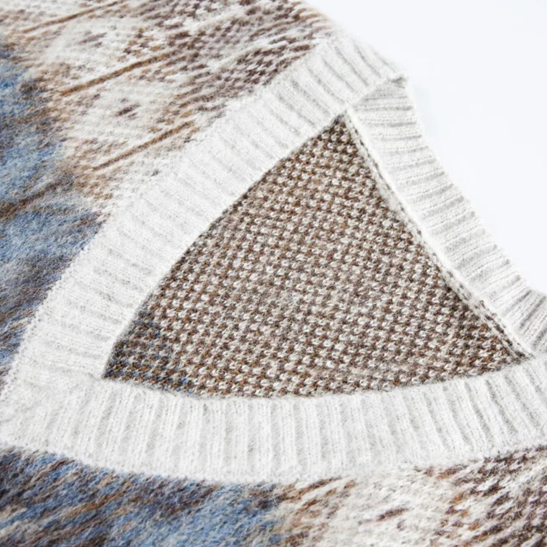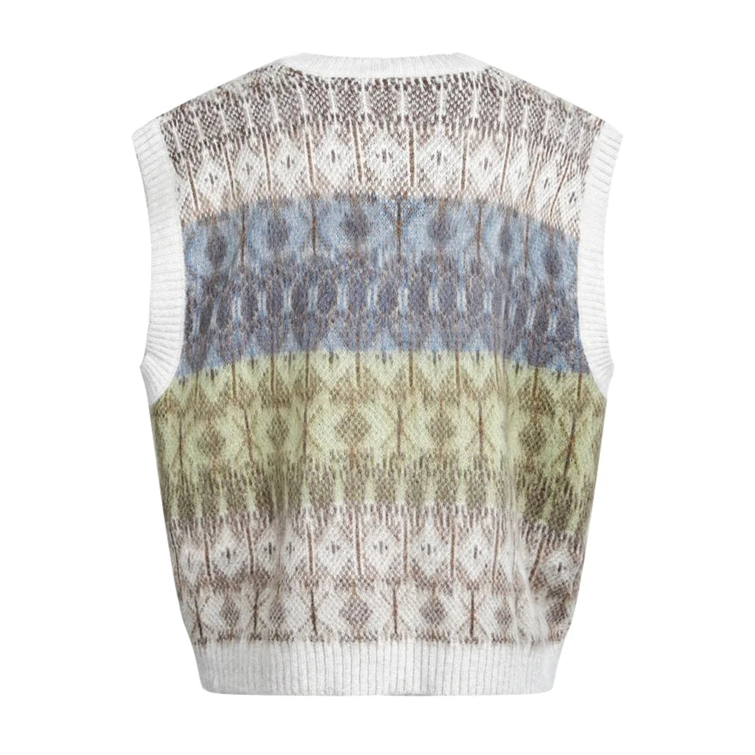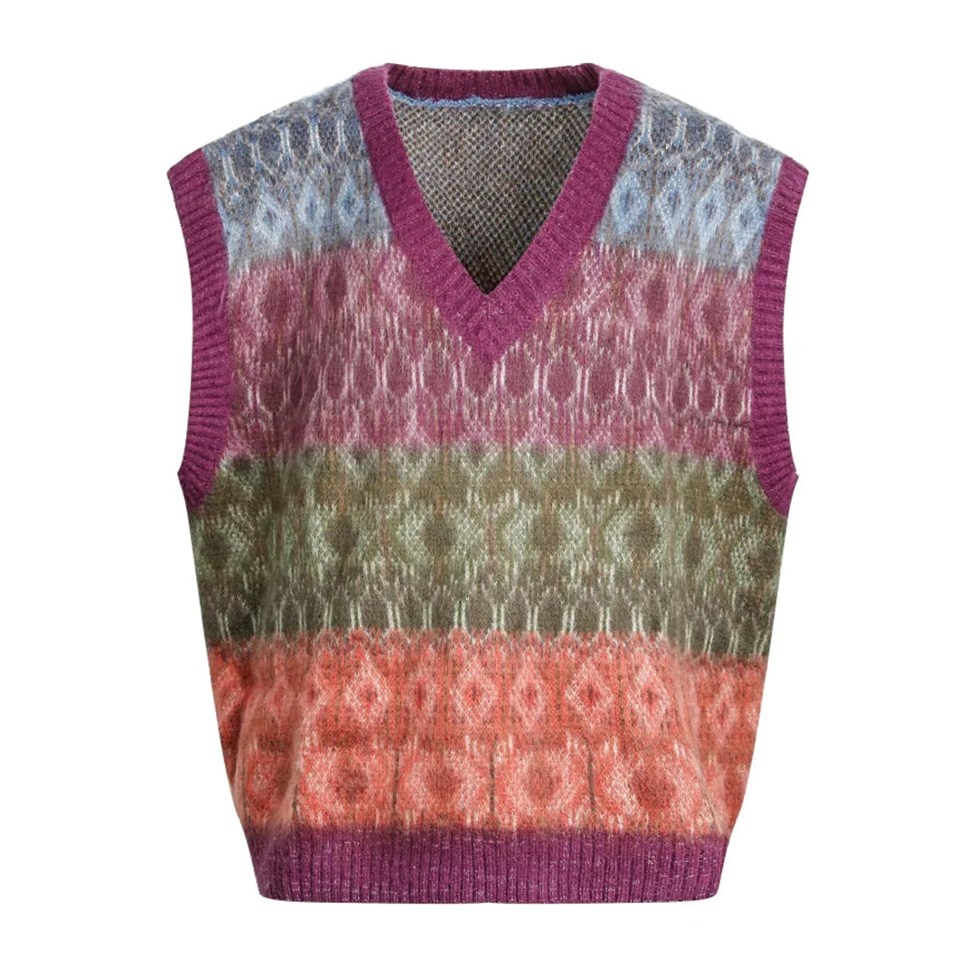 This mohair wool vest is defined by its soft jacquard weave and tonal contrast striping. A refined layering piece, it highlights modern tailoring with quiet detail.
