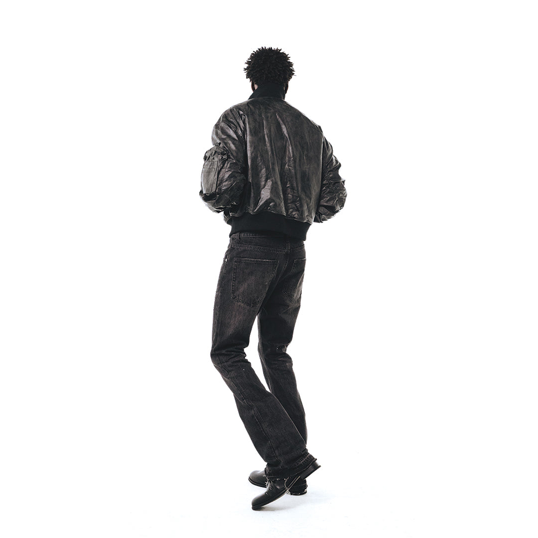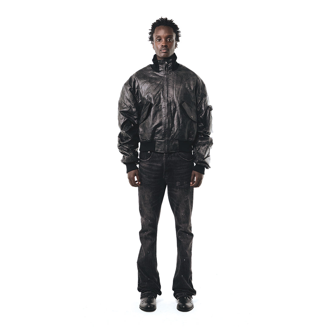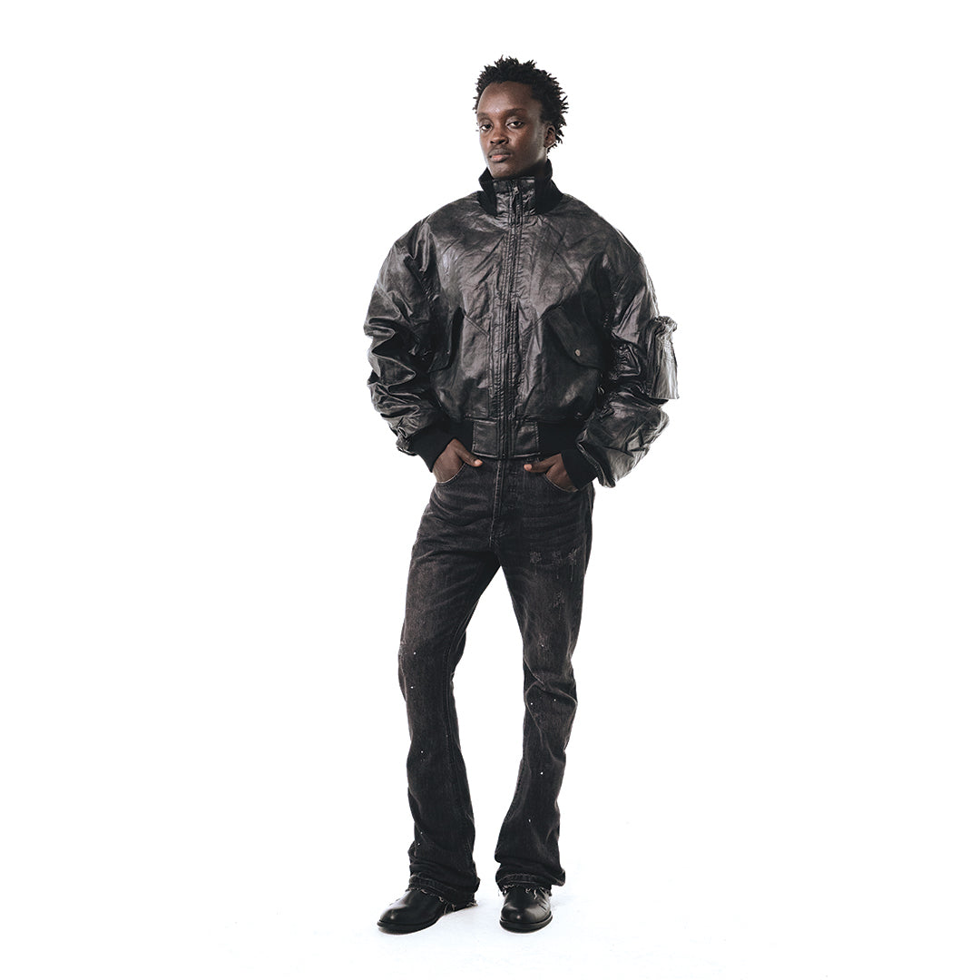This vintage-inspired bomber brings rugged charm with its scrunched sleeves and classic ribbed detailing. Multi-pocket styling adds depth and function without sacrificing edge.