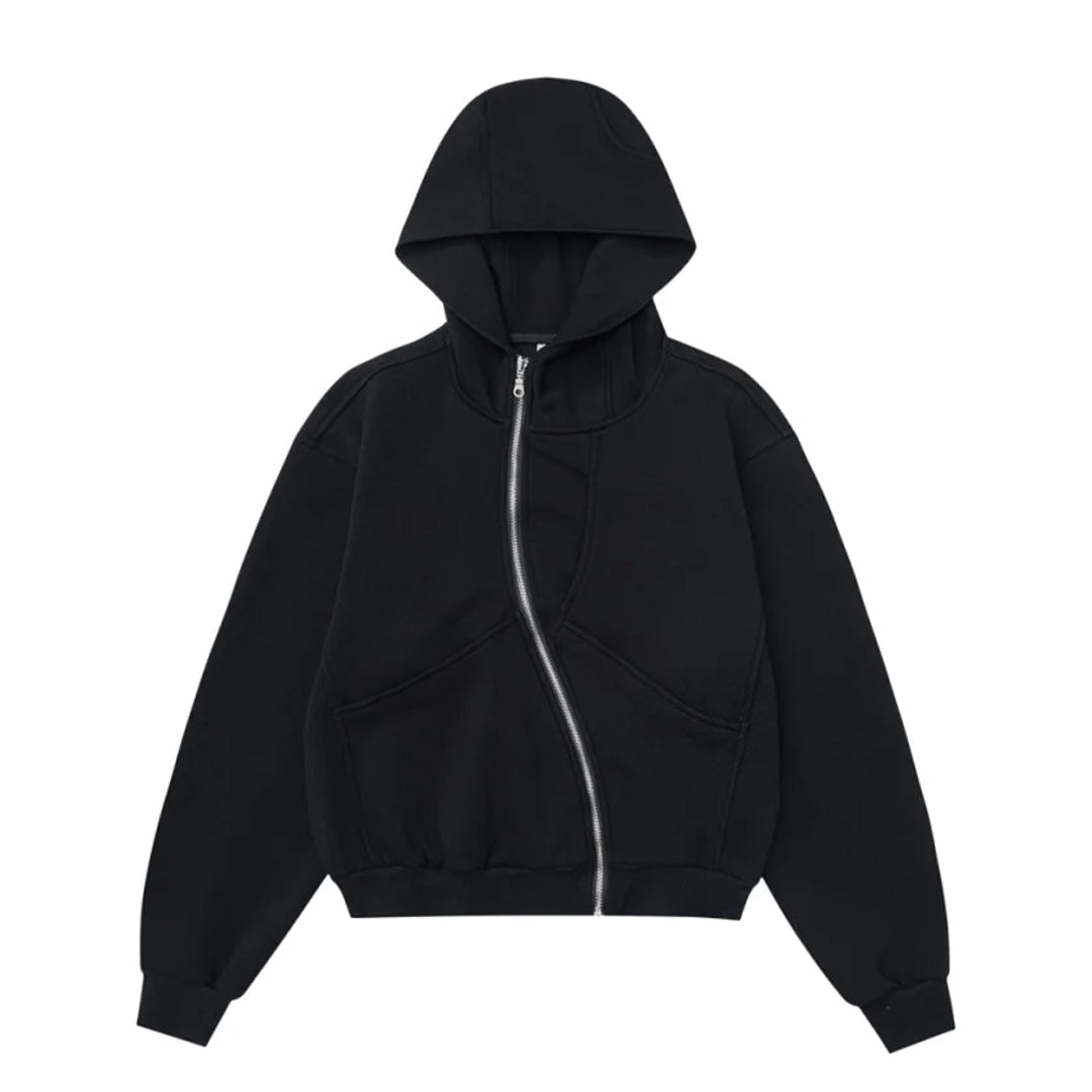Designed with a curved zip fastening, this hoodie delivers a considered twist on a streetwear staple. Wear it with jeans or wide-leg trousers for everyday versatility.