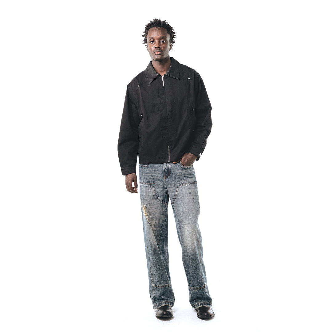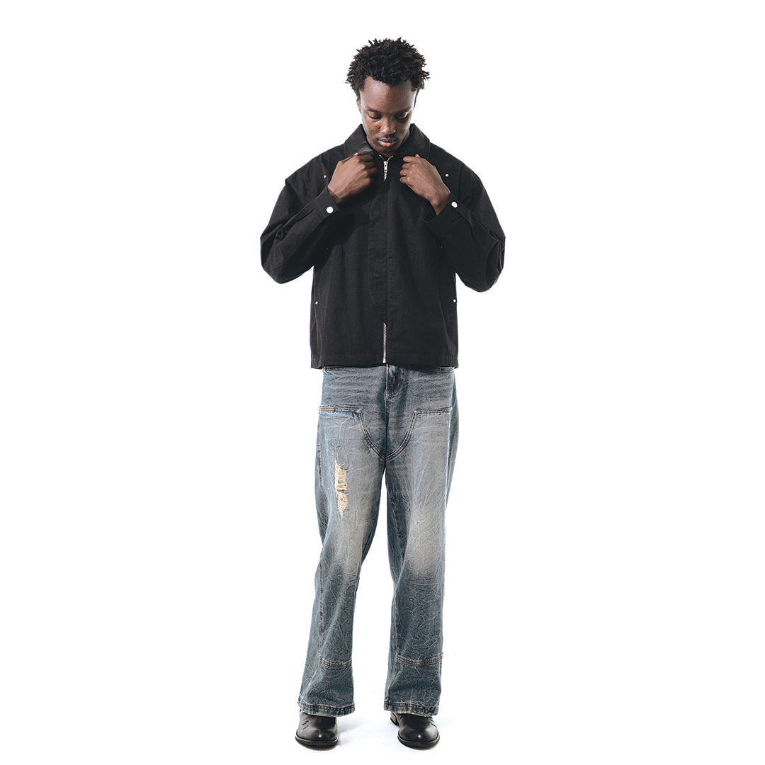 Cette saison, rehaussez votre garde-robe avec notre veste cargo en denim vert kaki, soigneusement confectionnée en coton épais. La silhouette oversize, ornée de détails patchwork vintage, se marie parfaitement avec la fermeture à double bouton et à glissière, offrant à la fois praticité et style raffiné.