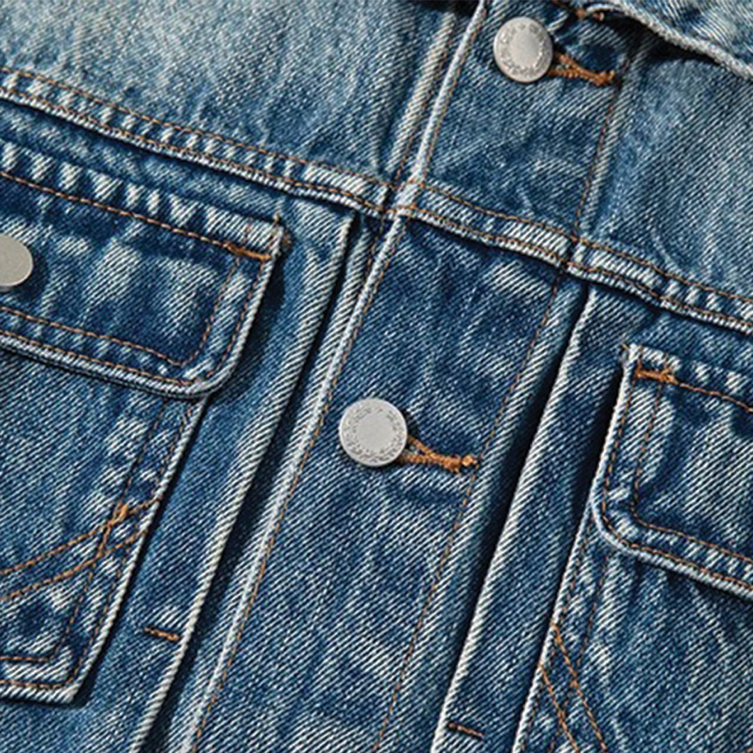 Version raffinée d'un basique classique, cette veste en jean matelassée délavée et vieillie allie charme robuste et confort contemporain. Confectionnée en coton de qualité supérieure et dotée d'un style matelassé, elle est un ajout essentiel à toute garde-robe moderne.