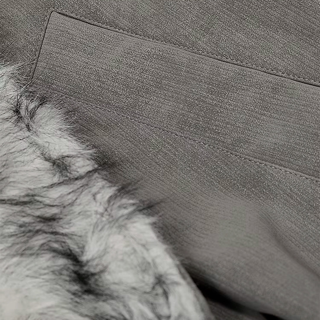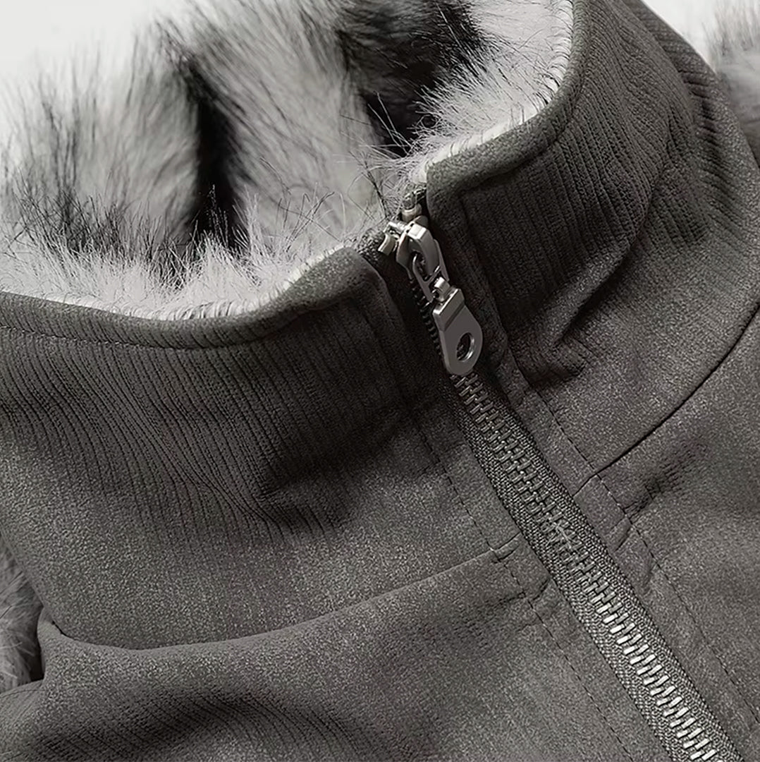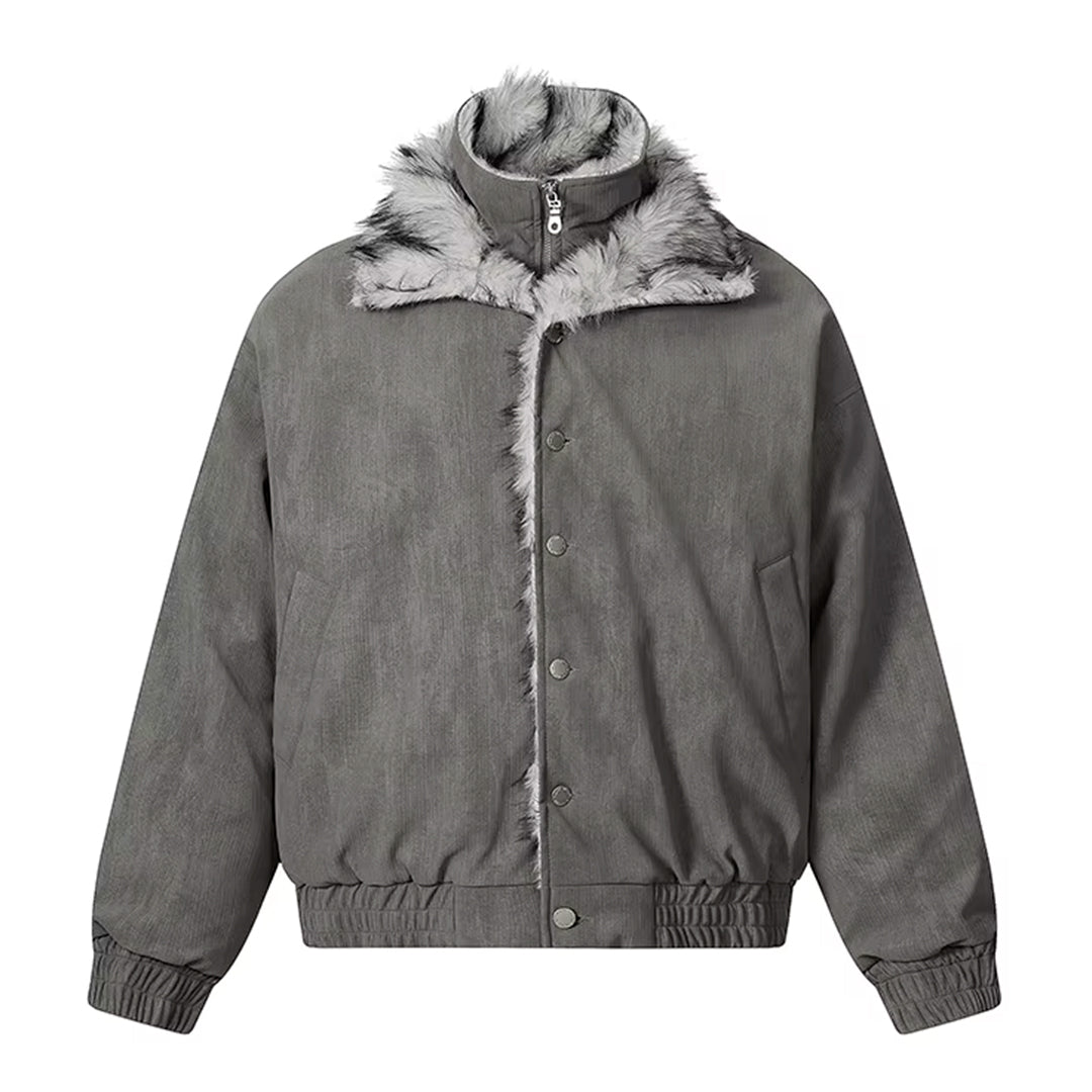 • Double-layer collar construction for enhanced wind protection and visual layering.