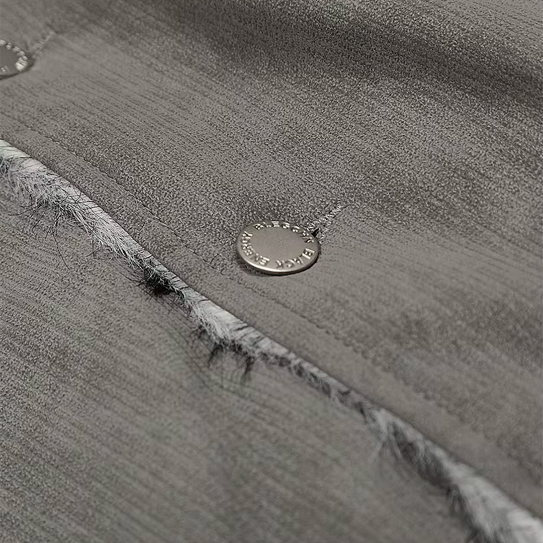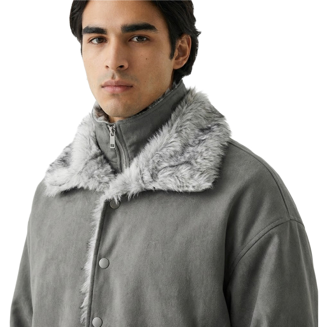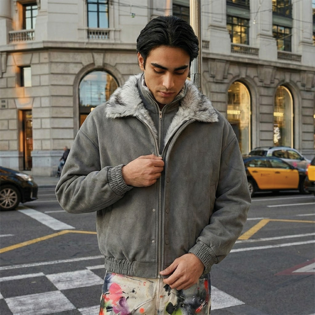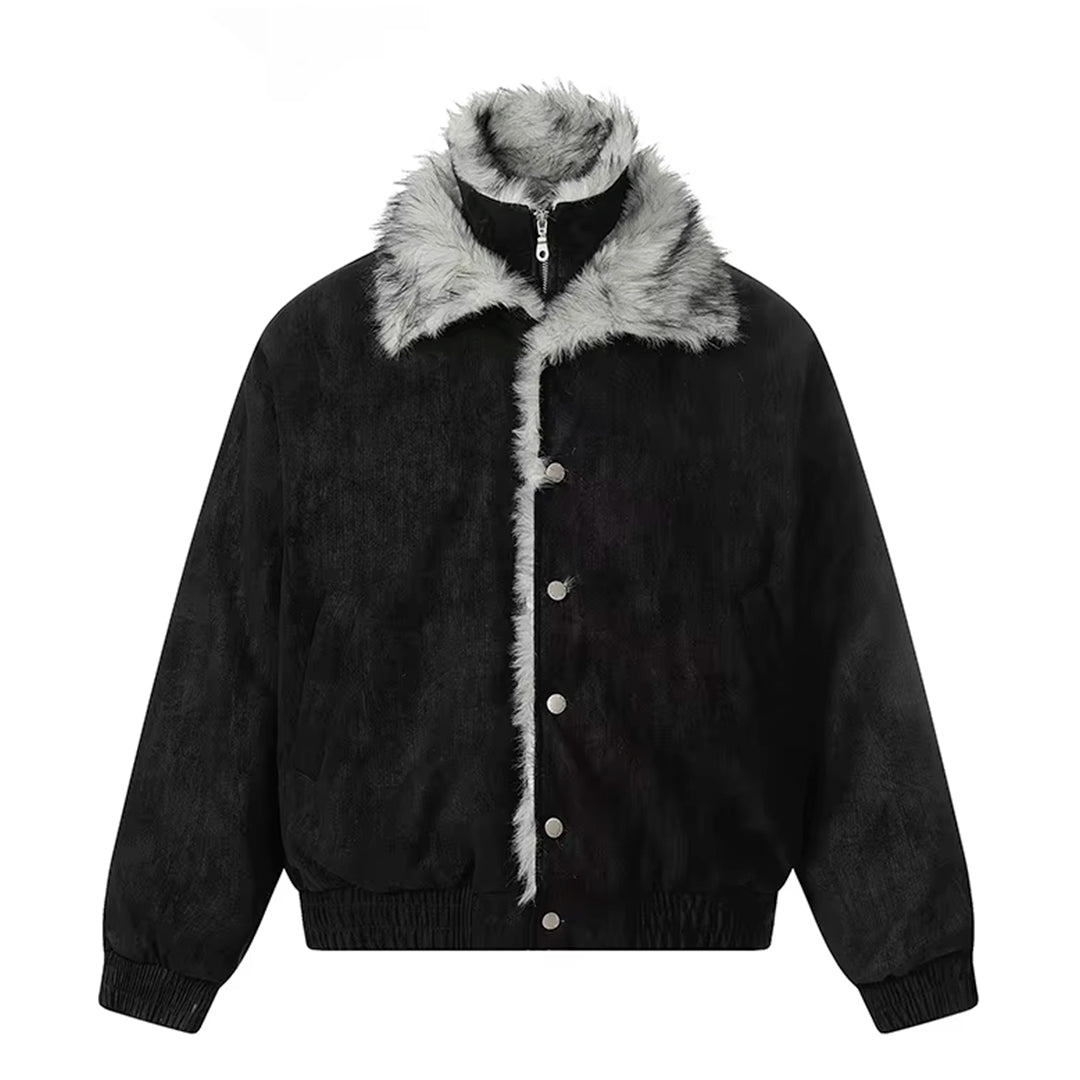 • Double-layer collar construction for enhanced wind protection and visual layering.