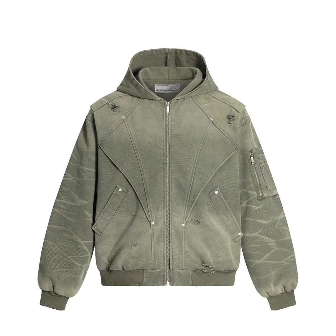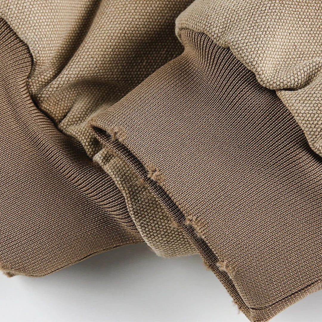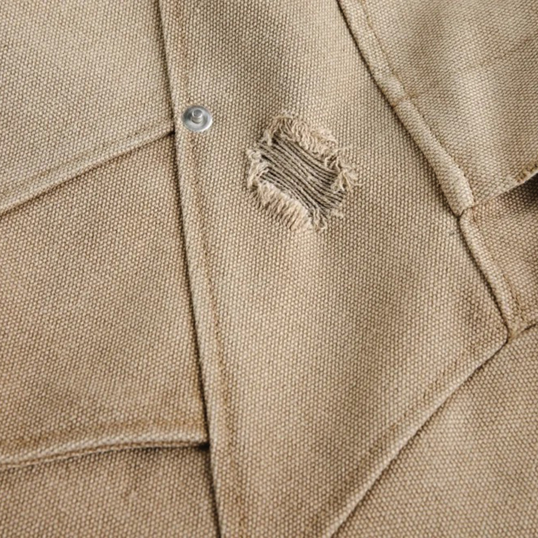 Cette saison, rehaussez votre garde-robe avec notre veste cargo en denim vert kaki, soigneusement confectionnée en coton épais. La silhouette oversize, ornée de détails patchwork vintage, se marie parfaitement avec la fermeture à double bouton et à glissière, offrant à la fois praticité et style raffiné.