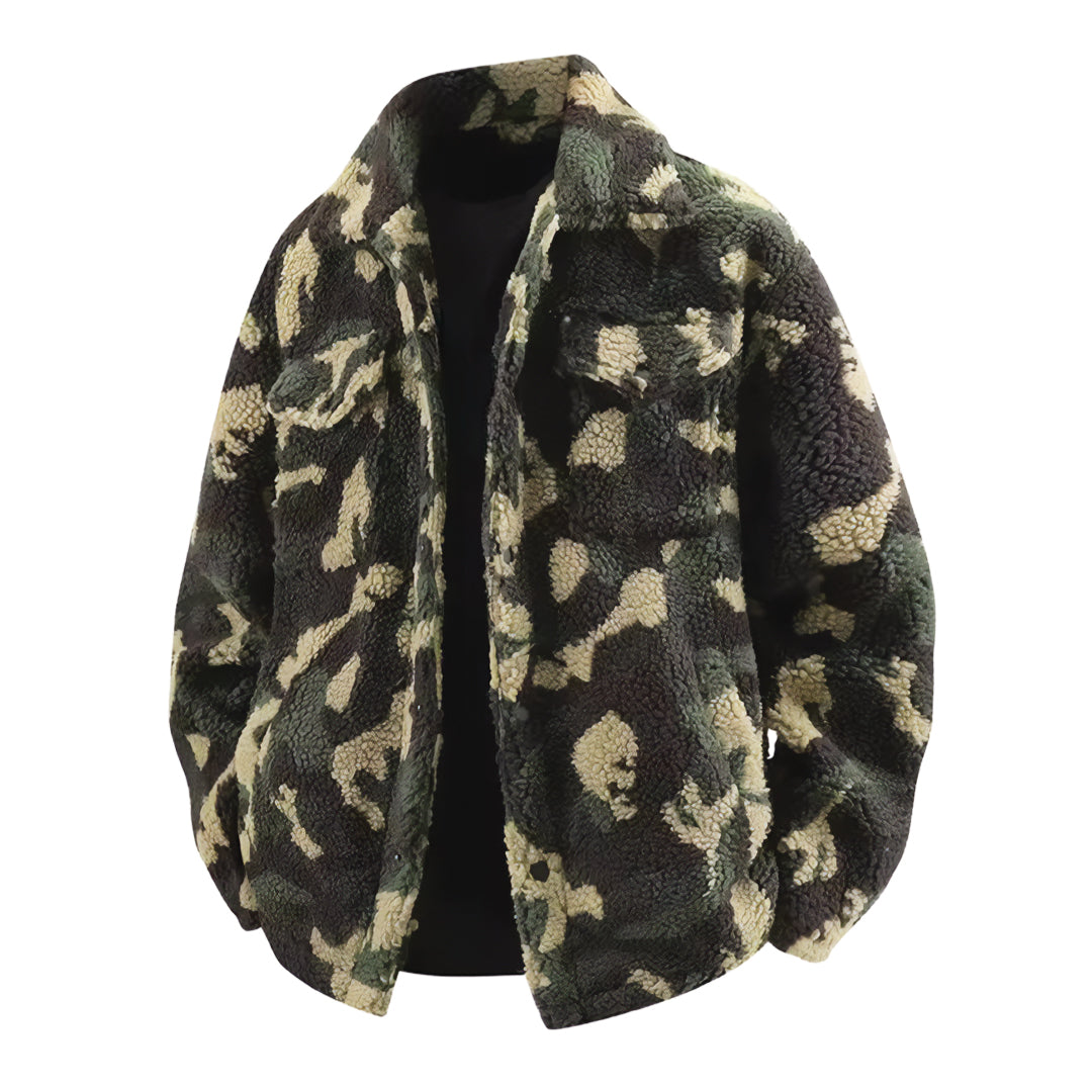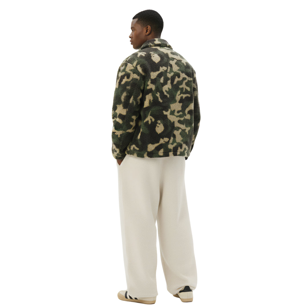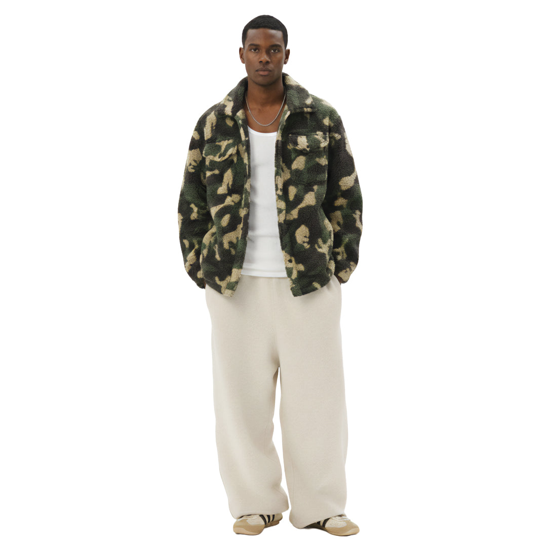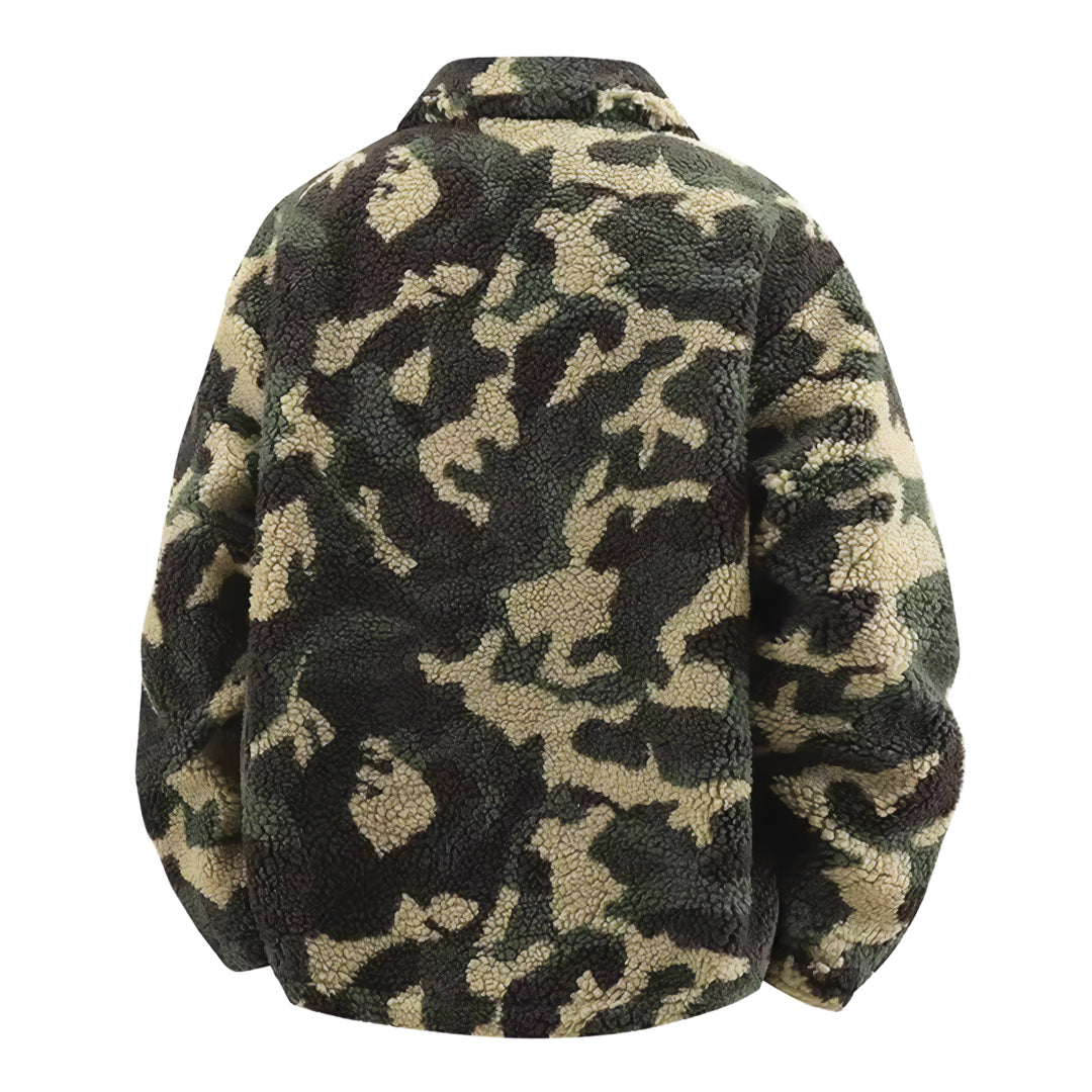This jacket is made from plush fleece with a muted camouflage print throughout. The shape is easy and refined, offering warmth without bulk.