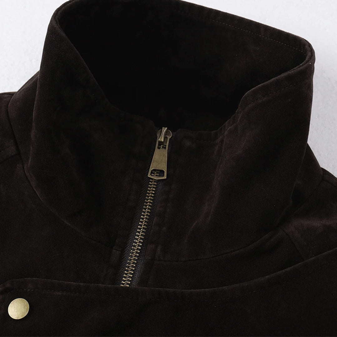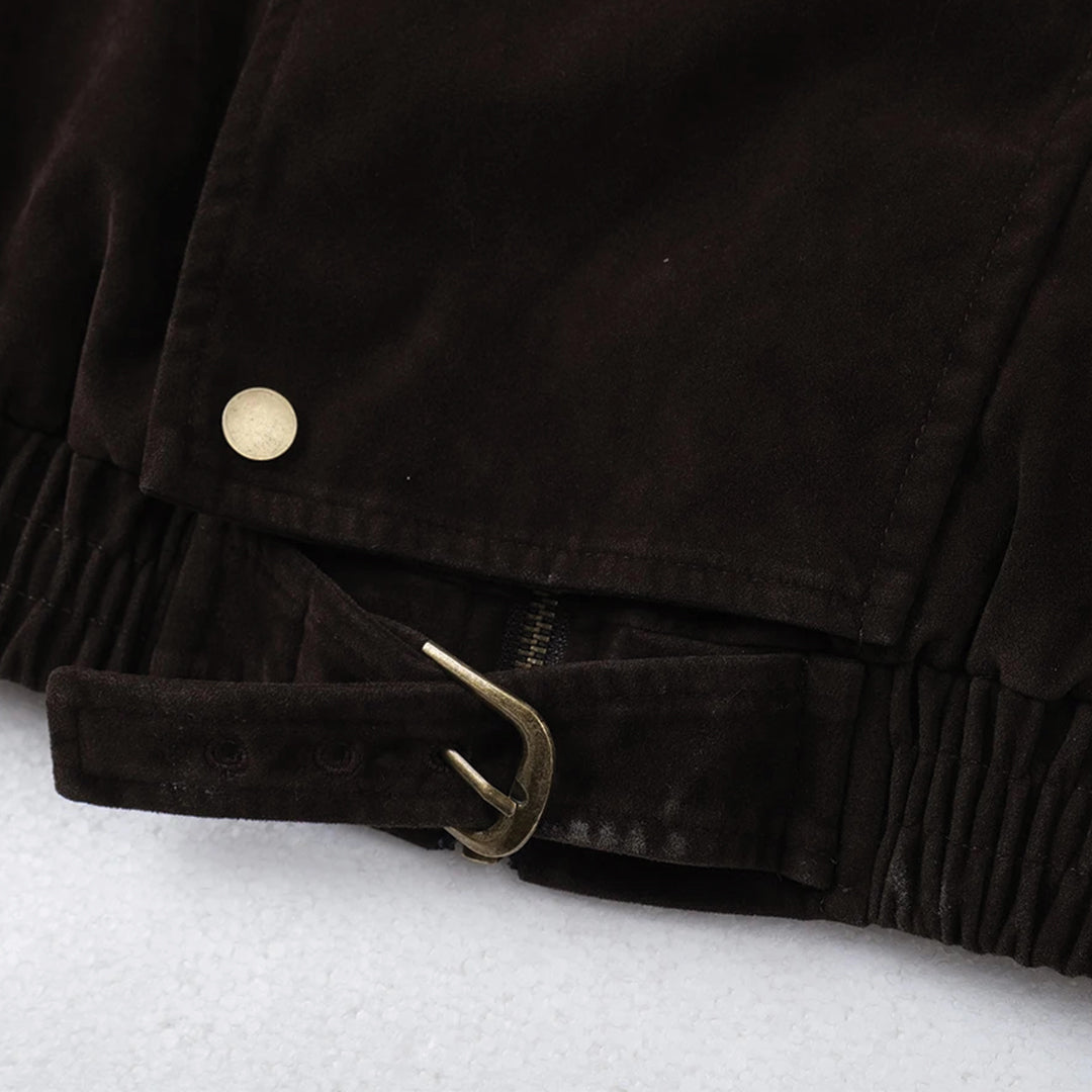 Cette saison, rehaussez votre garde-robe avec notre veste cargo en denim vert kaki, soigneusement confectionnée en coton épais. La silhouette oversize, ornée de détails patchwork vintage, se marie parfaitement avec la fermeture à double bouton et à glissière, offrant à la fois praticité et style raffiné.