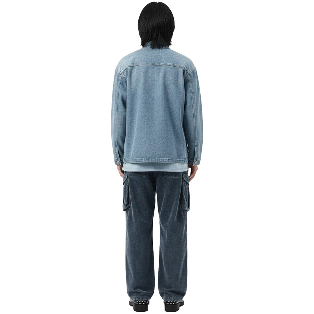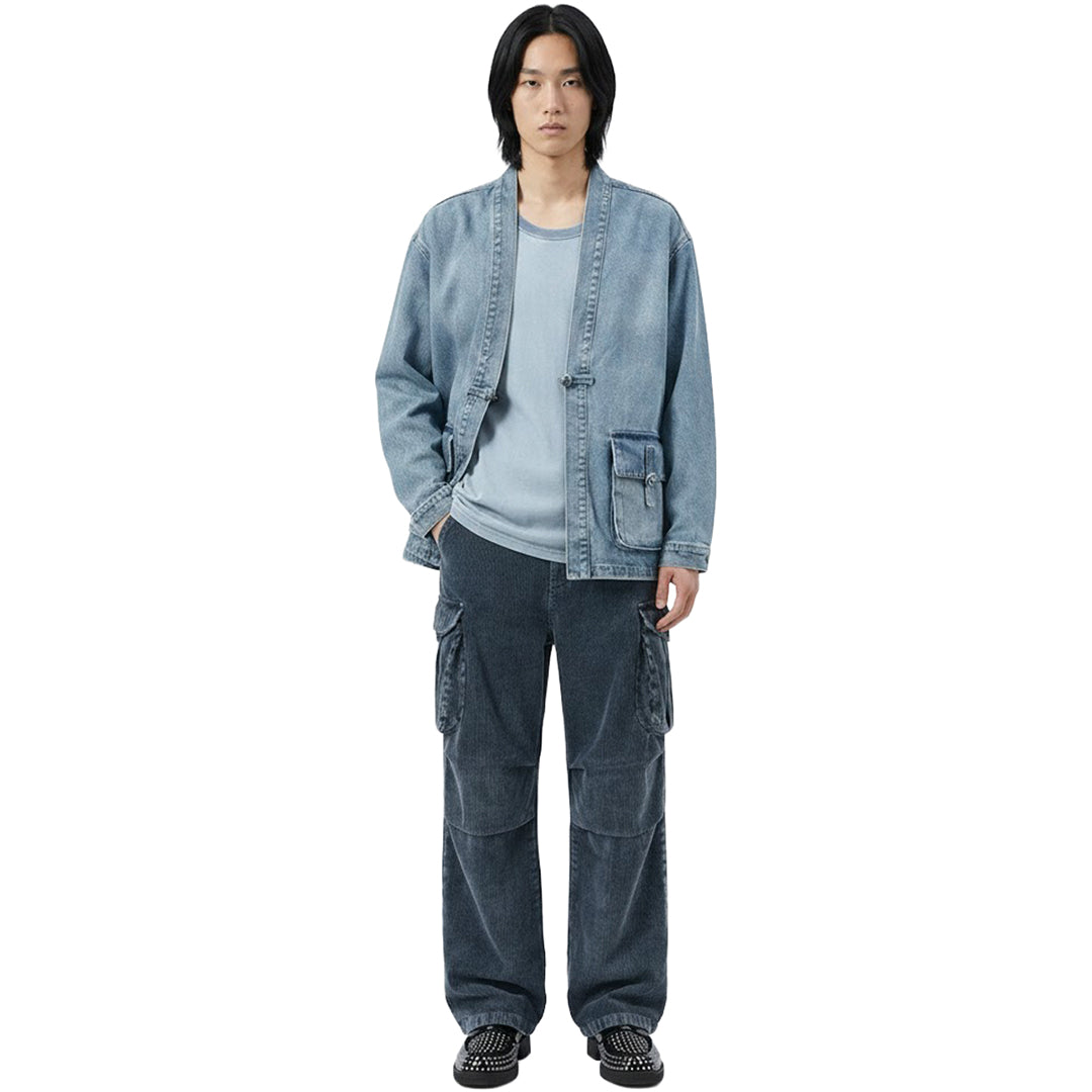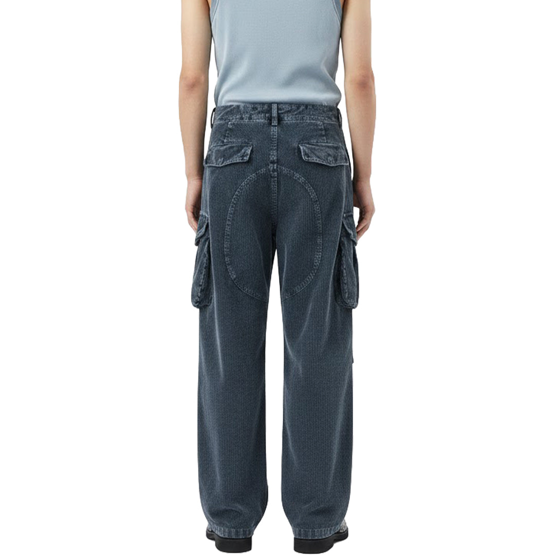 • Thick wale corduroy gives these cargo trousers a distinct, tactile finish that breaks up a flat outfit. The wide-leg cut stacks cleanly over boots, creating a strong profile for the season.