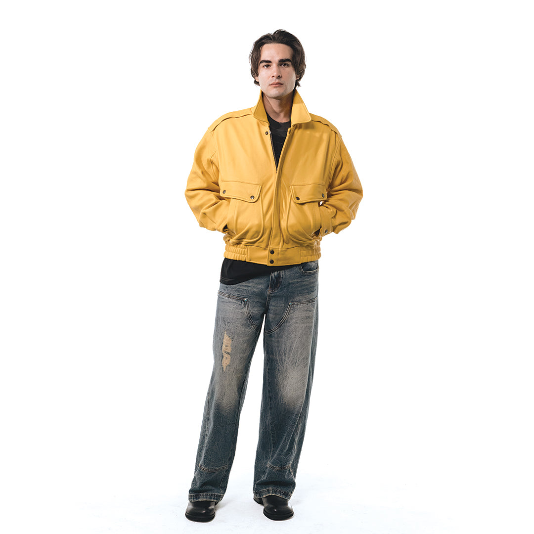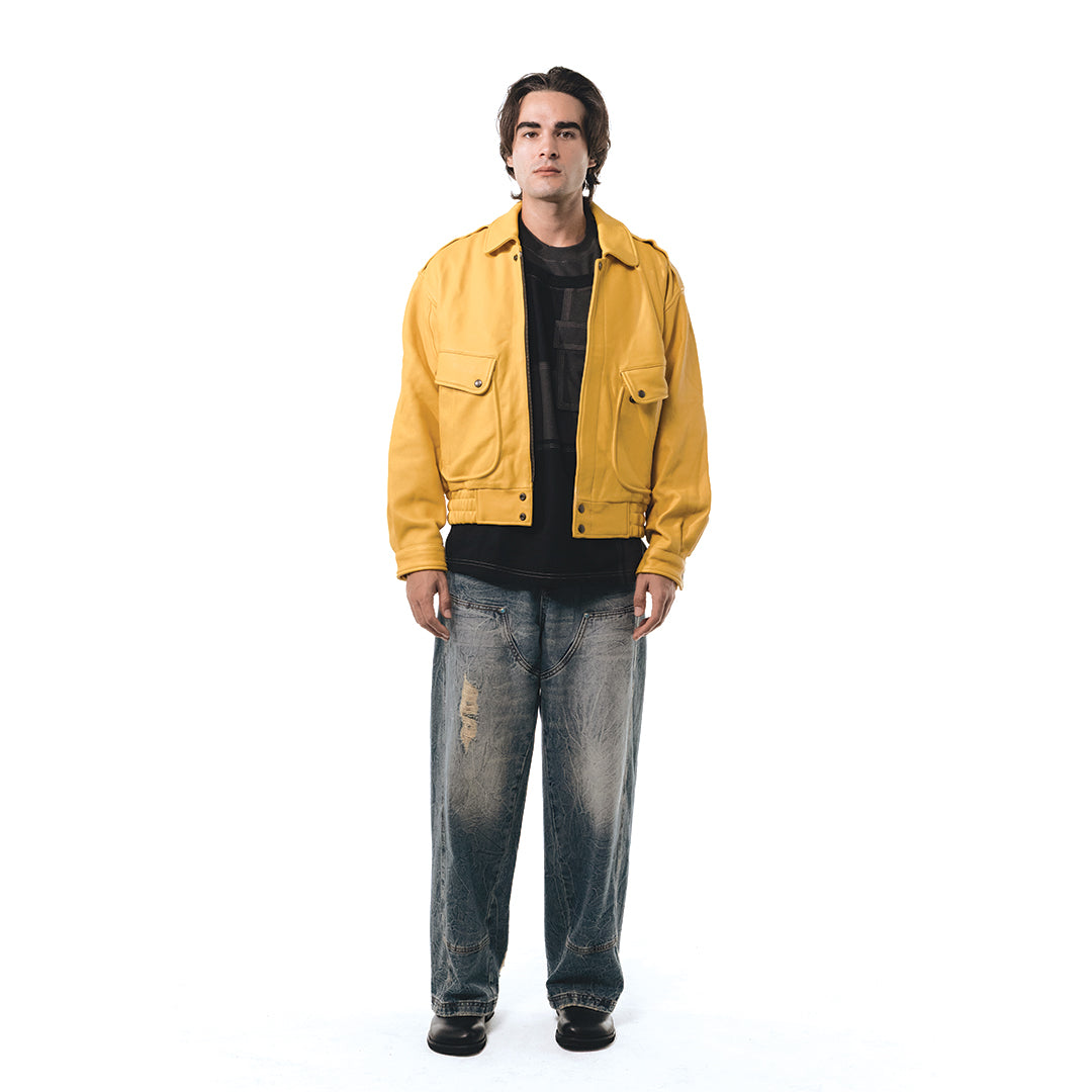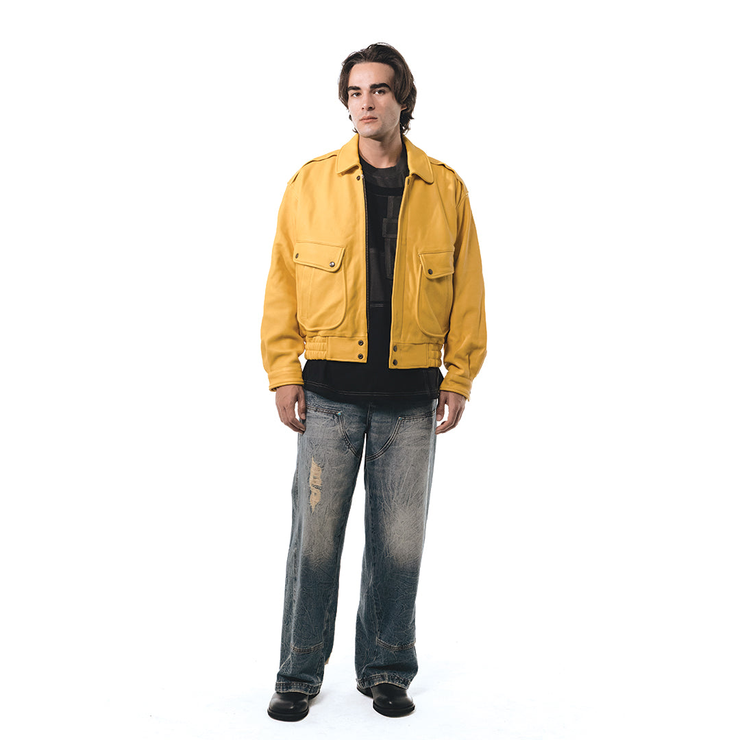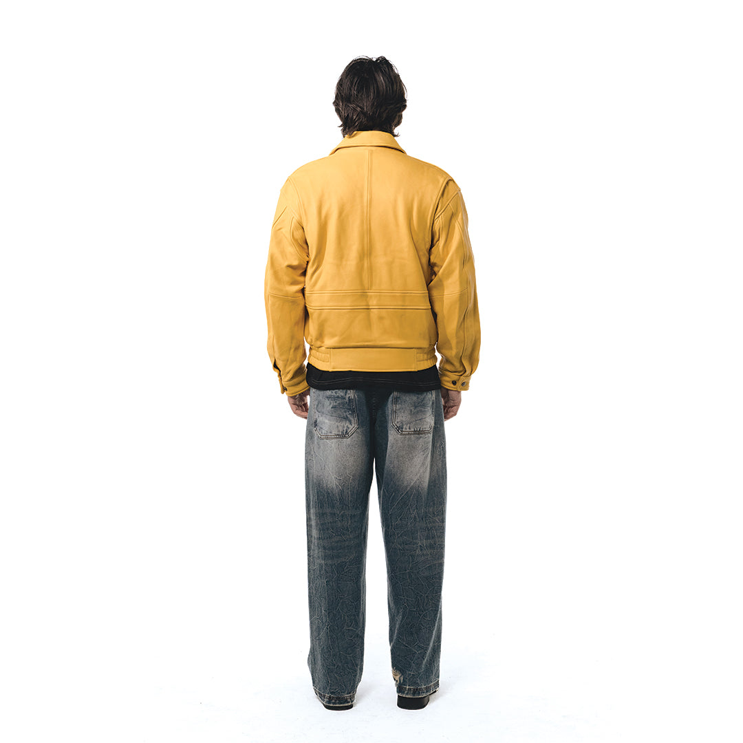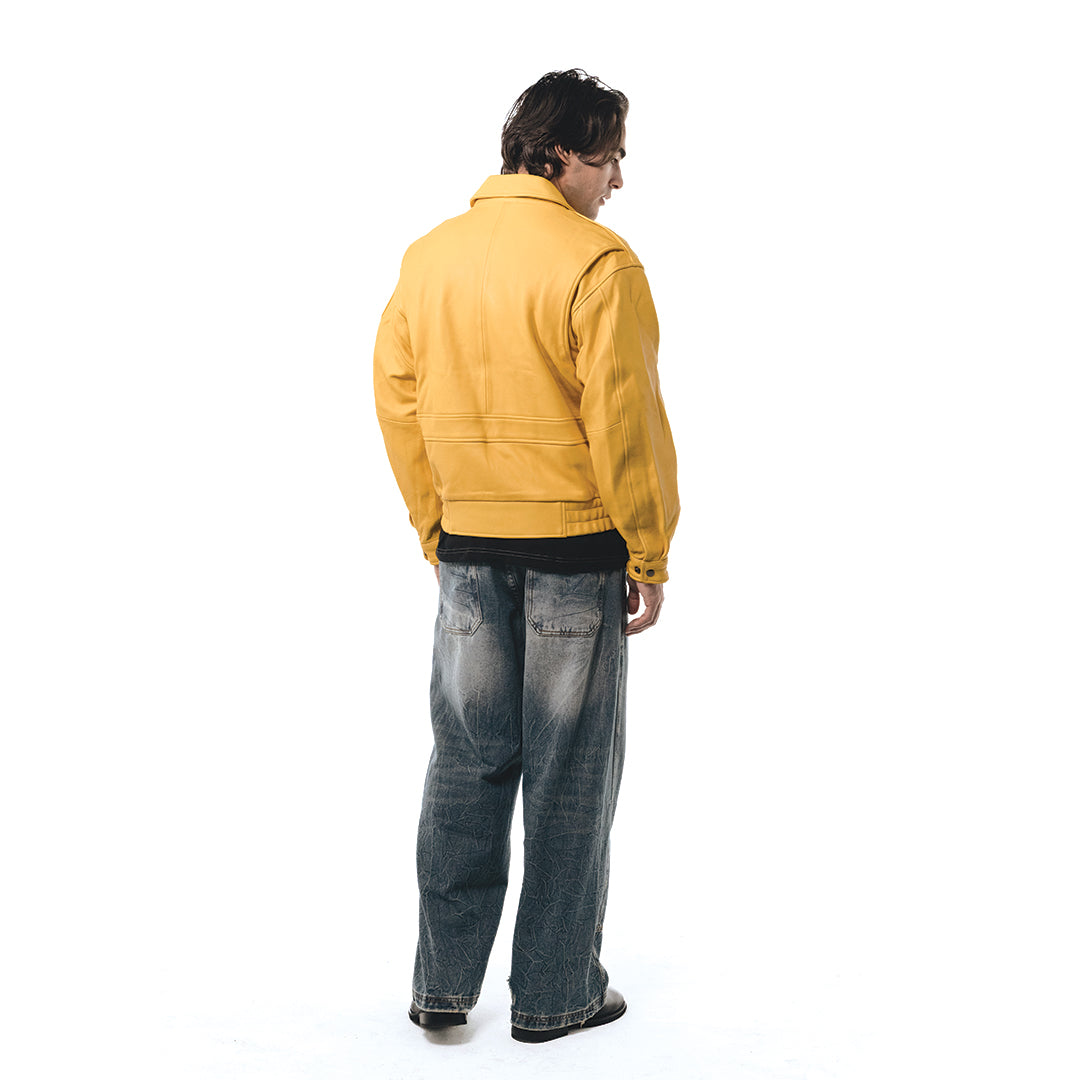 Crafted from rich grain leather, this sunburst jacket channels retro Americana with modern finish. The exaggerated pockets and padded hem deliver heritage with polish.