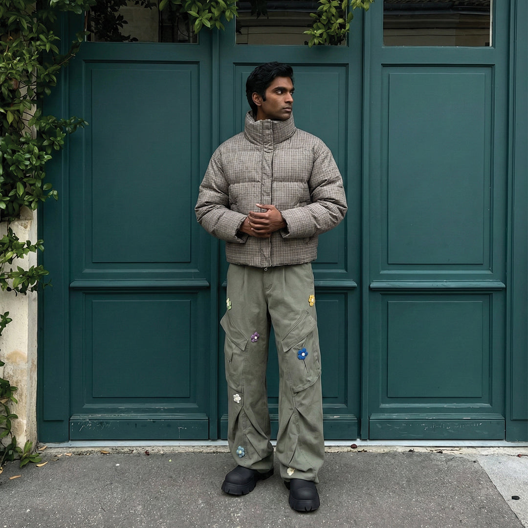 Plaid Mock Puffer Jacket
