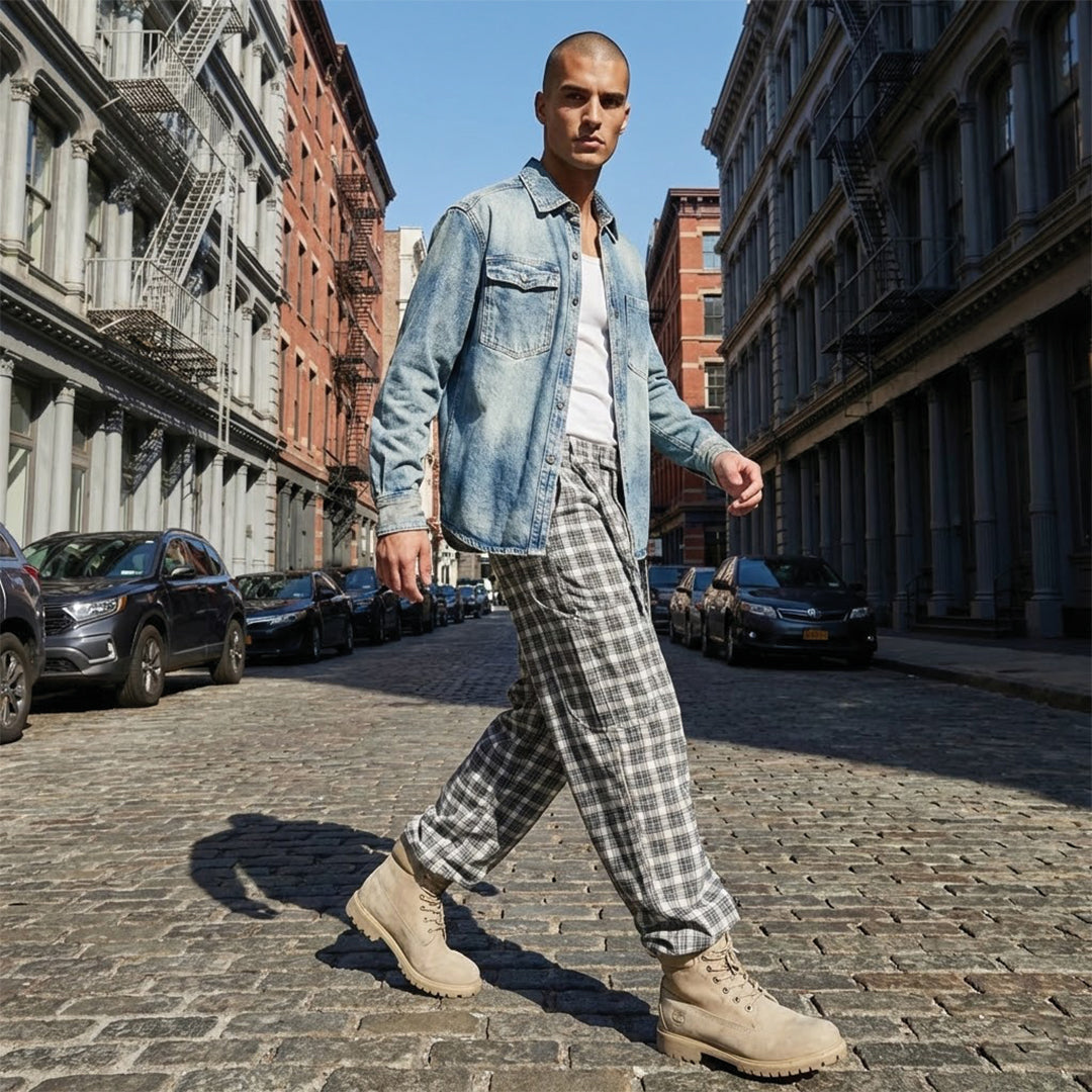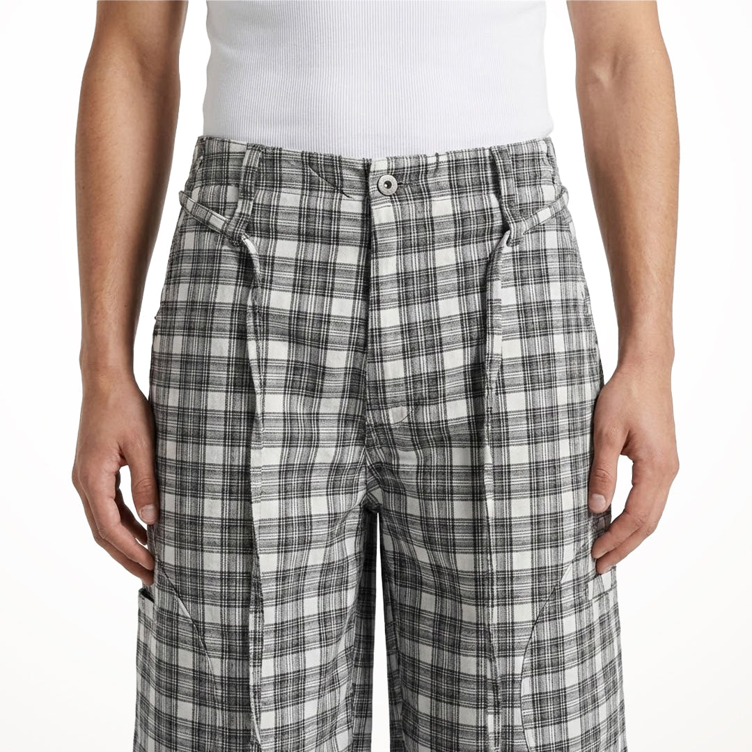 This wide-leg trouser is defined by a refined check weave and a relaxed, floor-grazing hem. Complete with a self-fabric belt, it offers a polished yet comfortable foundation for contemporary layering.