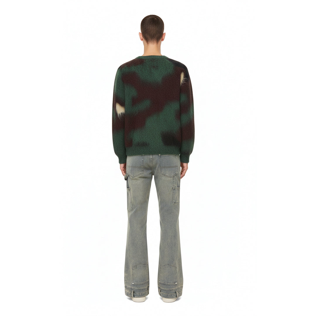 These flared jeans command attention with their unconventional upside-down pockets positioned strategically at the hem, adding unexpected visual interest. The graceful flare creates a stunning elongated profile while the double knee construction stand out from conventional denim offerings.